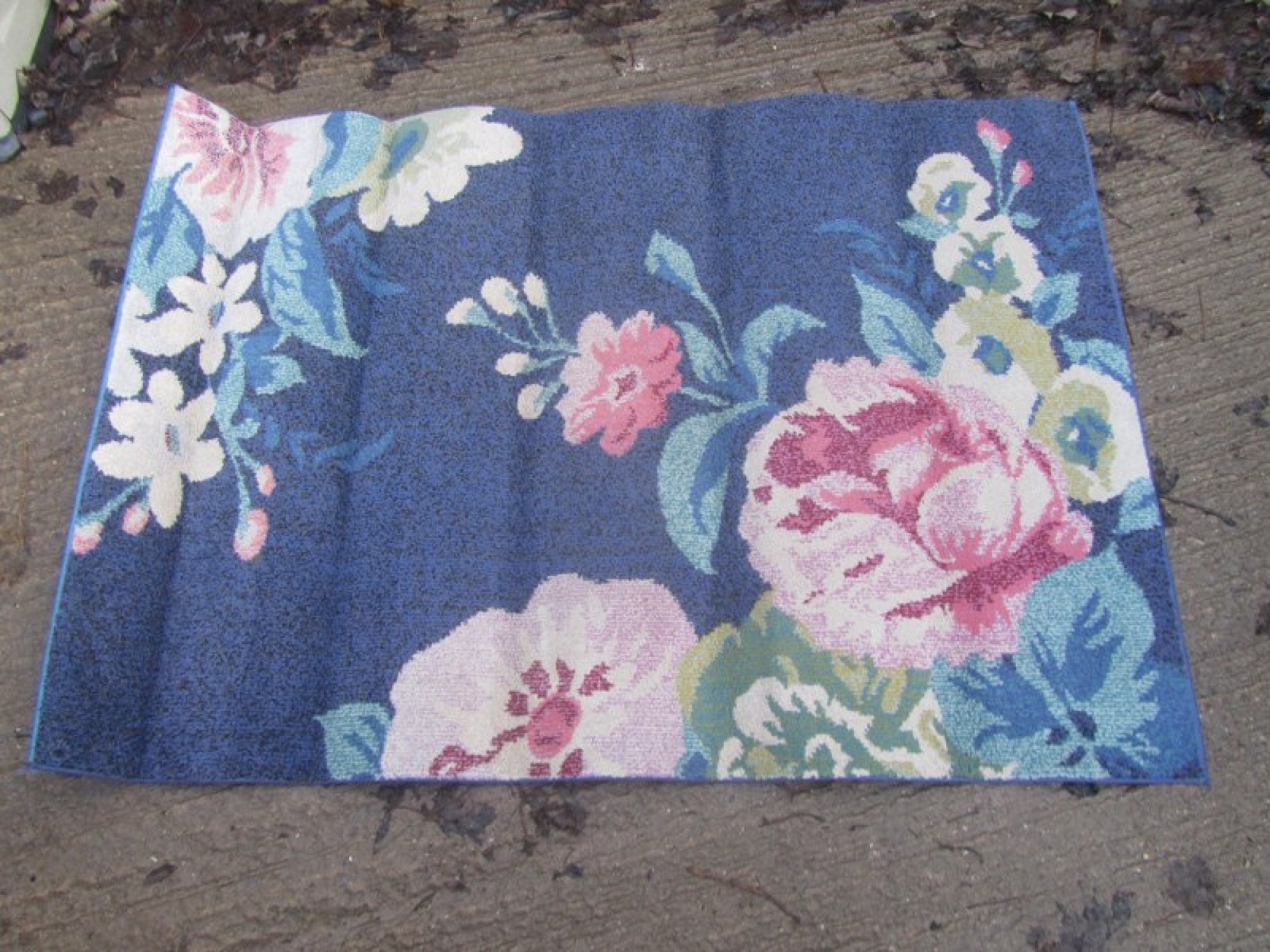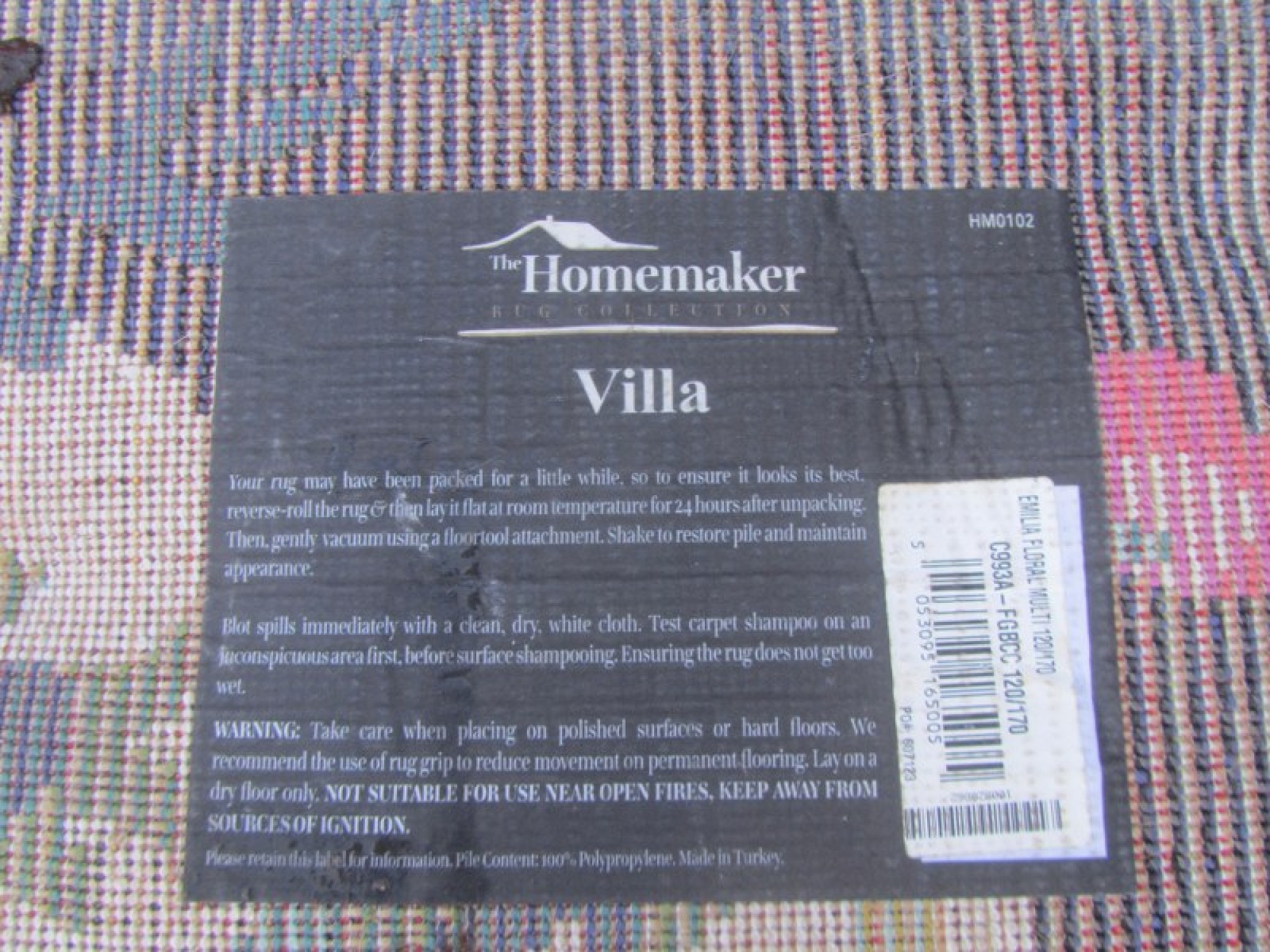 A MODERN RECTANGULAR RUG. SOME DOG HAIR, NEEDS CLEANING. HENCE PRICE.