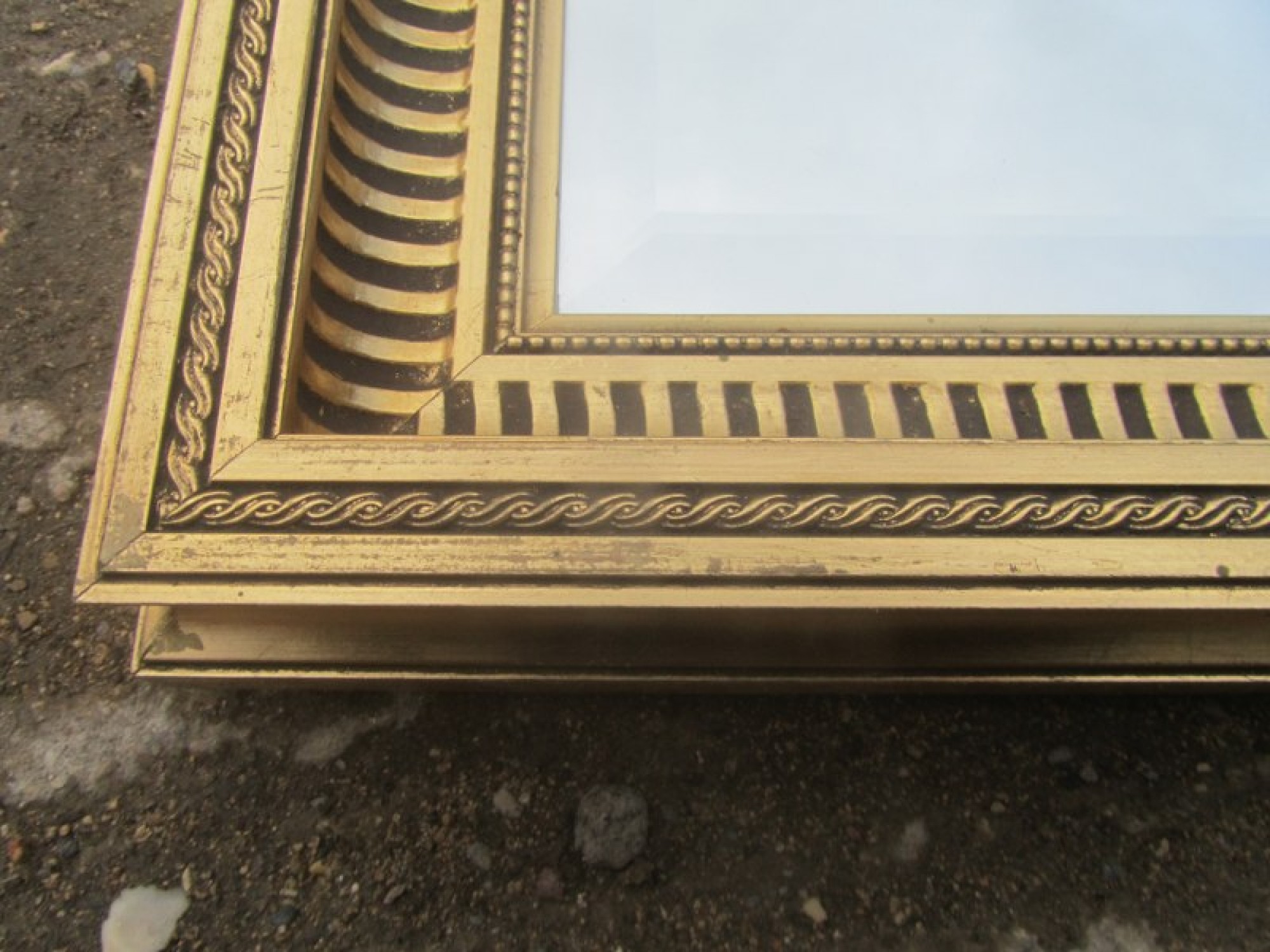 Items for Sale LARGE MODERN GILT FRAMED REPRODUCTION OVERMANTLE WALL MIRROR Share: View Larger Image View Larger Image Select to enlarge £ 65 A LARGE DECORATIVE MIRROR WITH A GILT EFFECT FRAME. GOOD QUALITY. ADDITIONAL DETAILS RESERVE ITEM Condition:GOOD Manufacture Date:2000s Height:99 cms Length:127 cms Depth:5 cms Quantity:1 Item Number:41412 * Please complete all the fields below to send an enquiry about this product. Please reserve this item for me… Reset Send