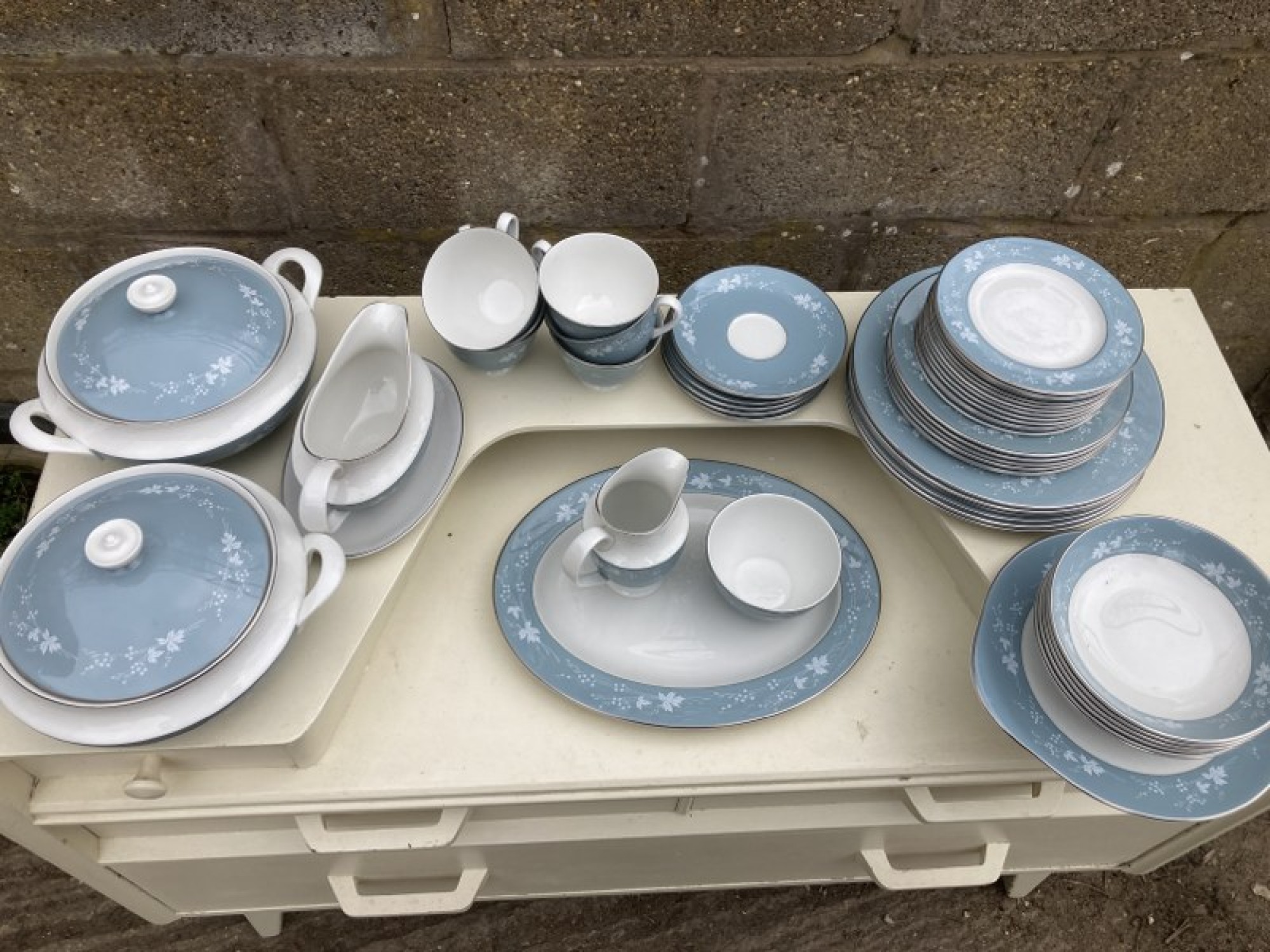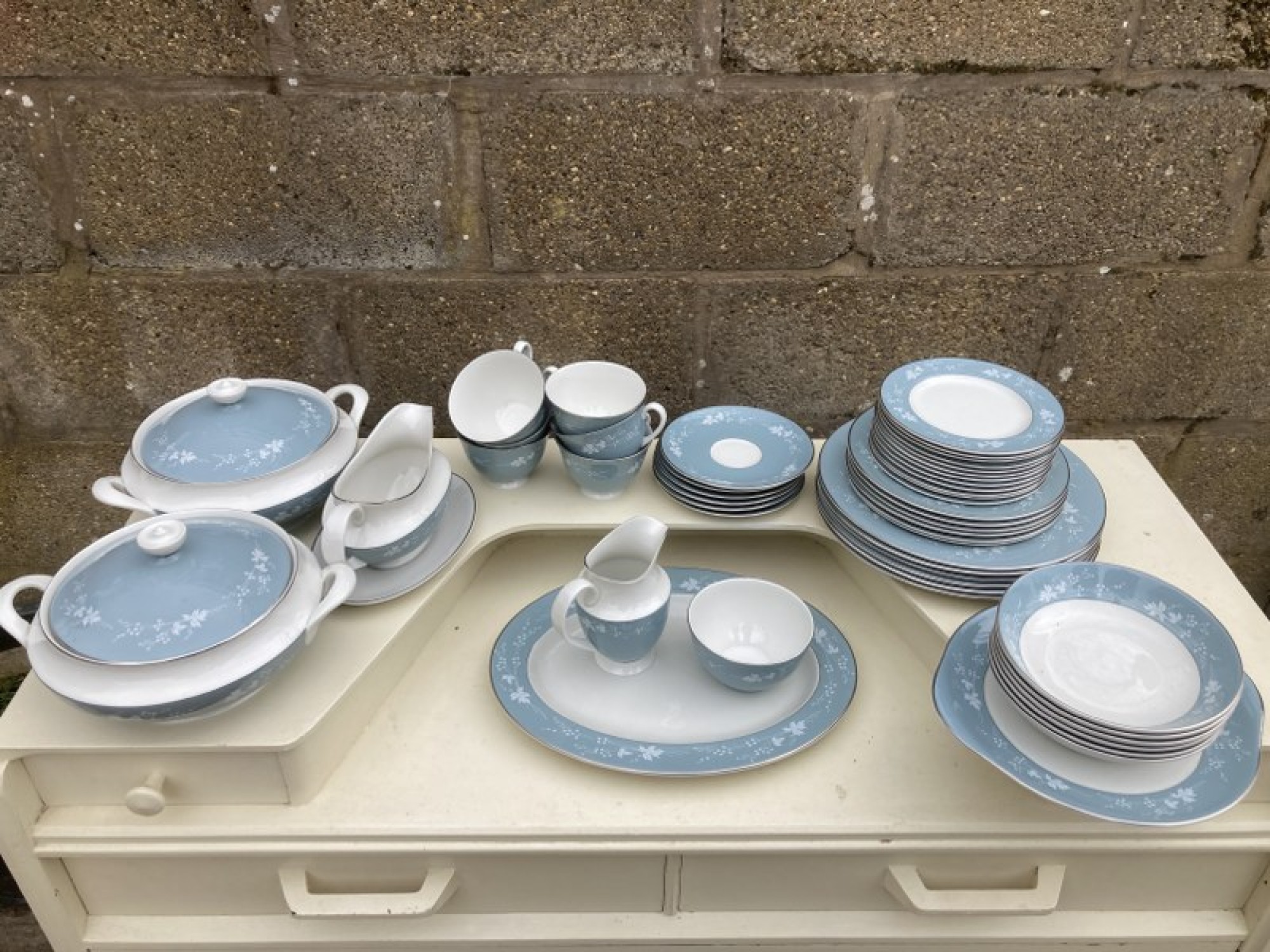 50 x PIECES. A TEA / DINNER SET, INCLUDING PLATES, SAUCERS, CUPS etc. IN GOOD CONDITION. MADE BY ROYAL DOULTON. FROM THE 'REFLECTION' RANGE.