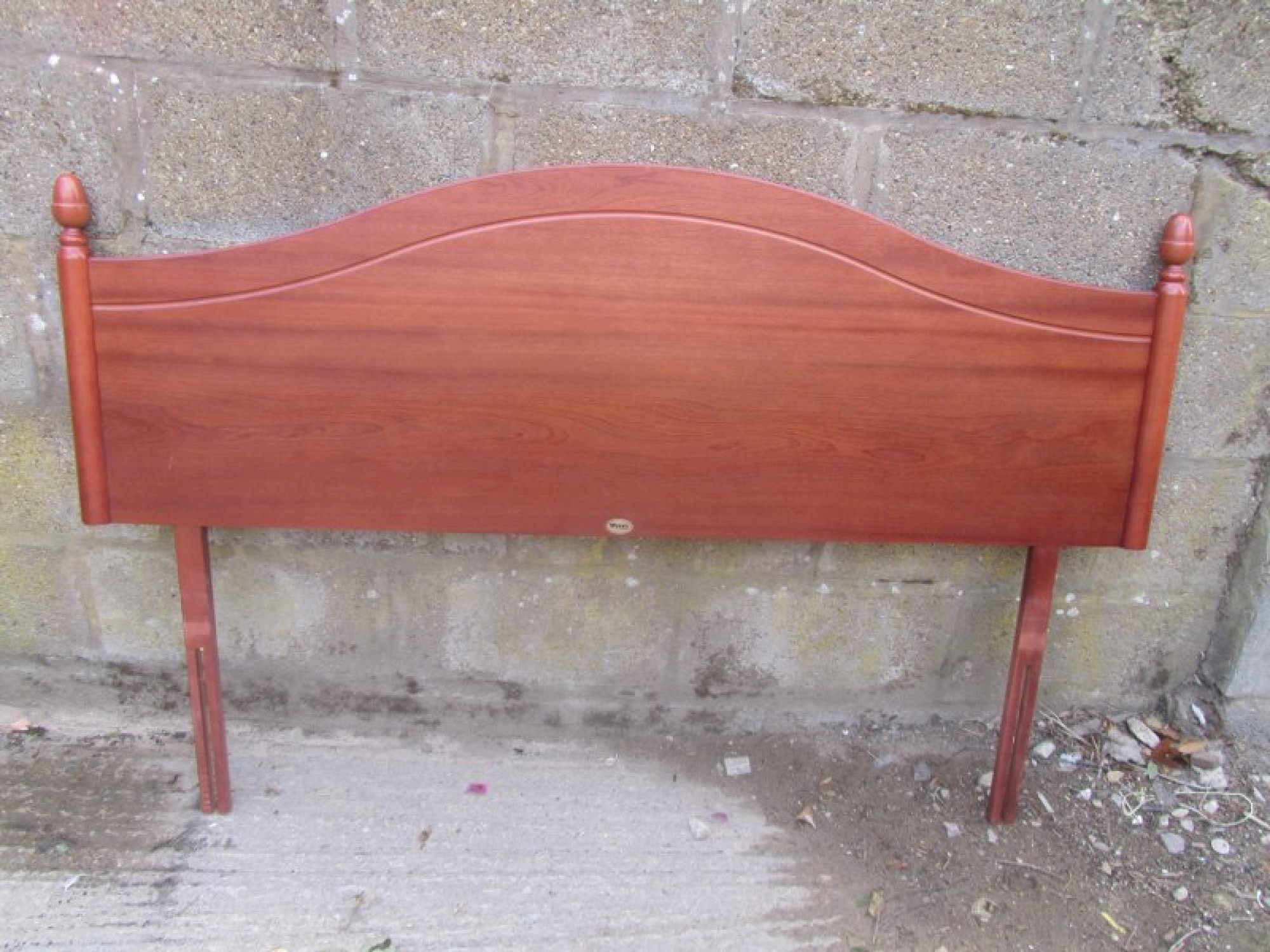 A MAHOGANY VENEERED 4'6" DOUBLE HEADBOARD.