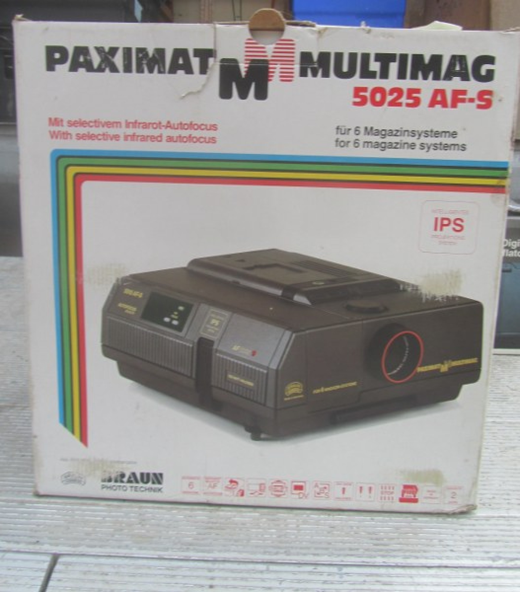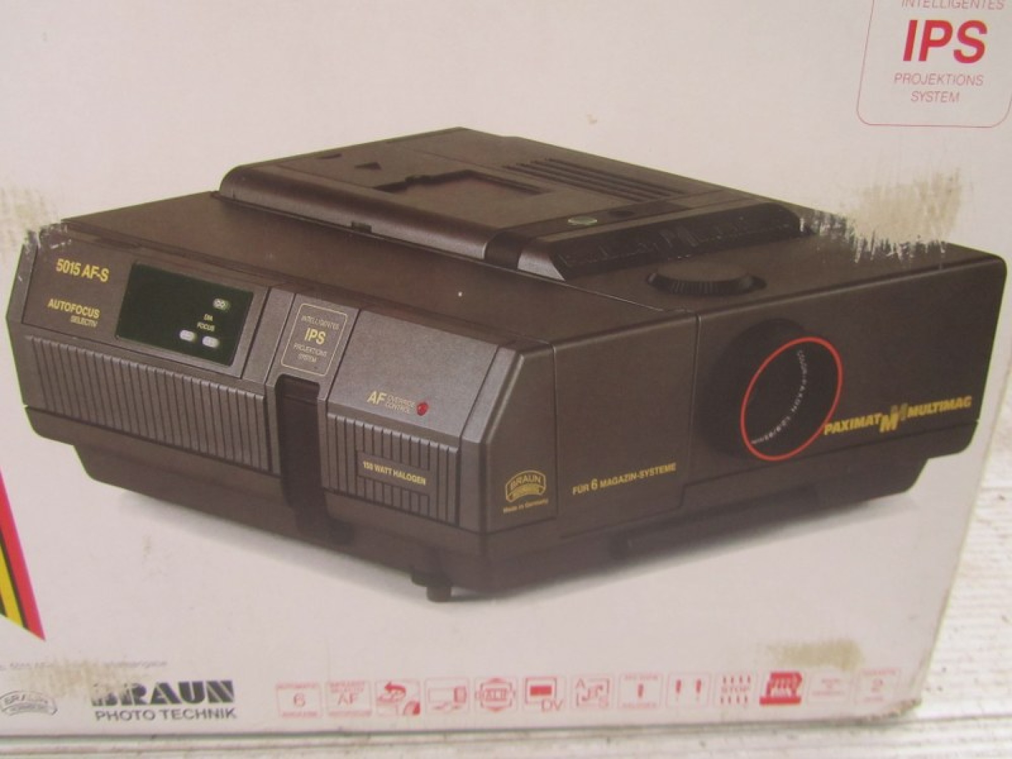 A PAXIMAT SLIDE PROJECTOR, OLD AND BASIC. IN ORIGINAL BOX. THE LIGHT WORKS AND GIVES A GOOD PICTURE ON A FLAT WHITE WALL. ALL OUR ELECTRICAL GOODS HAVE BEEN SAFETY TESTED. THEY GENERALLY COME FROM HOUSE CLEARANCES AND ARE BELIEVED TO BE IN GOOD WORKING ORDER. WE DO A BASIC FUNCTION TEST, BUT DUE TO THE VOLUME OF STOCK IT IS NOT POSSIBLE OR VIABLE TO DO A FULL EXTENSIVE SERVICE ON EACH ITEM. IF THE ITEM HAS A FAULT WITHIN 7 DAYS YOU CAN BRING IT BACK TO OUR WAREHOUSE BY APPOINTMENT FOR A FULL REFUND. PLEASE NOTE - NO REPLACEMENT OR REPAIR CAN BE OFFERED AND NO TRAVEL OR CONSEQUENTIAL COSTS CAN BE PAID, WE SIMPLY OFFER A FULL REFUND.