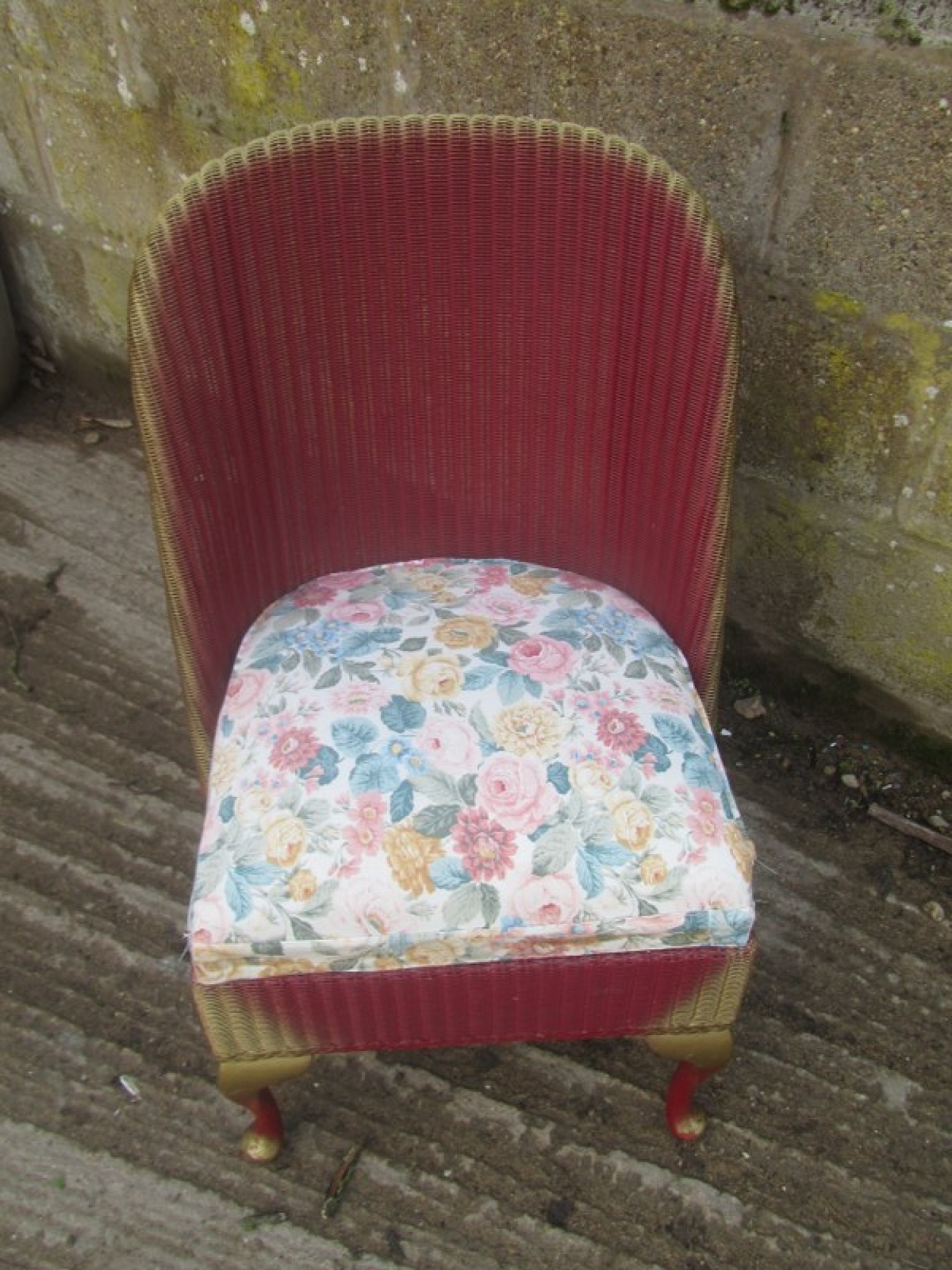A WOVEN LLOYD LOOM CHAIR. IT IS 'LLOYD LOOM' CHAIR, RED & GOLD. SEAT HEIGHT IS 41CM.